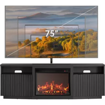 68" Fluted TV Stand with 23" Electric Fireplace Heater for TVs Up to 75"